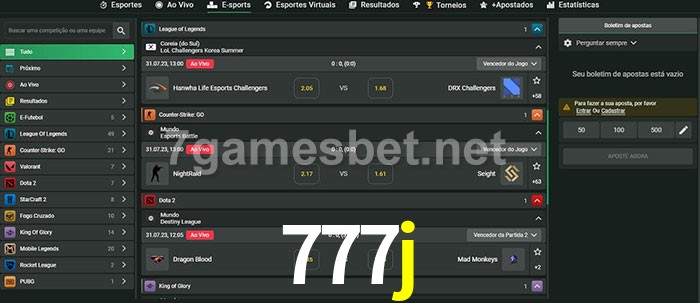 O 777j oferece uma grande seleção de opções de apostas em e-sports com probabilidades competitivas